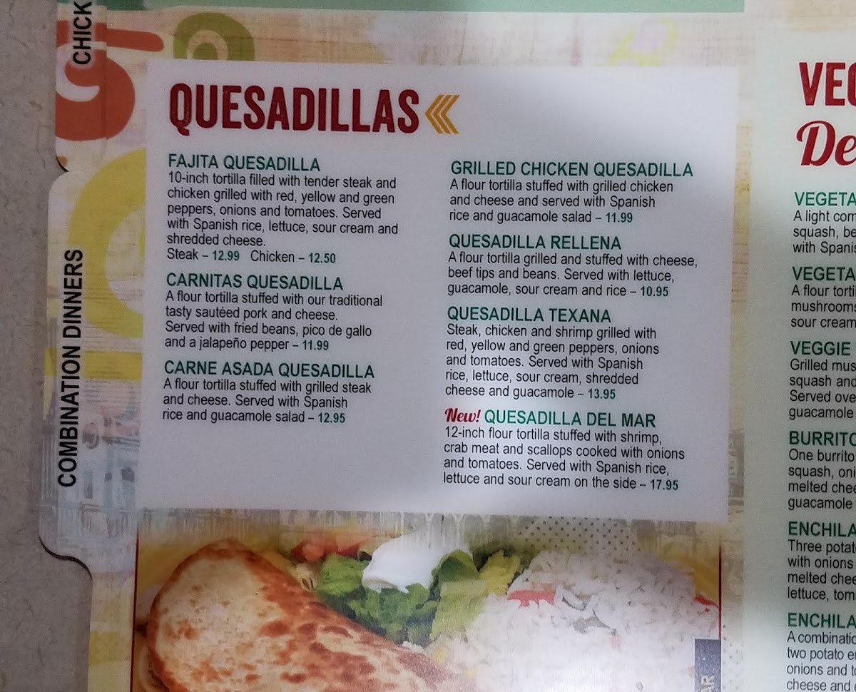Any two different items: Burrito – Enchilada – Taco – Chile Relleno – Cheese Quesadilla